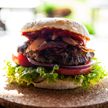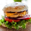 400 г • Булочка, котлета-гриль из говядины, салатный лист, помидор, лук, картофель-гриль, маринованные огурцы, сыр Чеддер, майонезный соус, барбекю соус