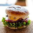 350 г • Булочка, котлета из Адыгейского сыра, салатный лист, помидор, лук, горчичный соус, чесночный соус